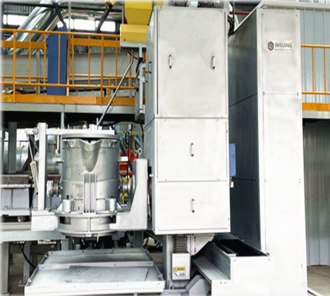 采用钢带以包芯线机将稀土镁合金包裹其中,制成合金包芯线,然后以喂线机将其喂入到铁水处理包的底部来实现球化的目的